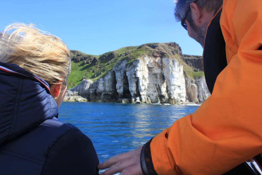 Such a great day’s craic with Tim and Ben. I would highly recommend the Full Monty trip for everyone. A great way to see Rathlin and the beautiful coastline with all the information on wildlife, geology, important landmarks and historical events. With skipper, Tim, and son Ben at the helm, it’s all about safety first then enjoyment. RNLI rocks! No problem with nervous embarkees like Joanne! Maybe keep a spare pair of socks and trainers on the boat, Tim! Good oul Norn Iron banter. Thanks from the noisy group of giggling girlies.”